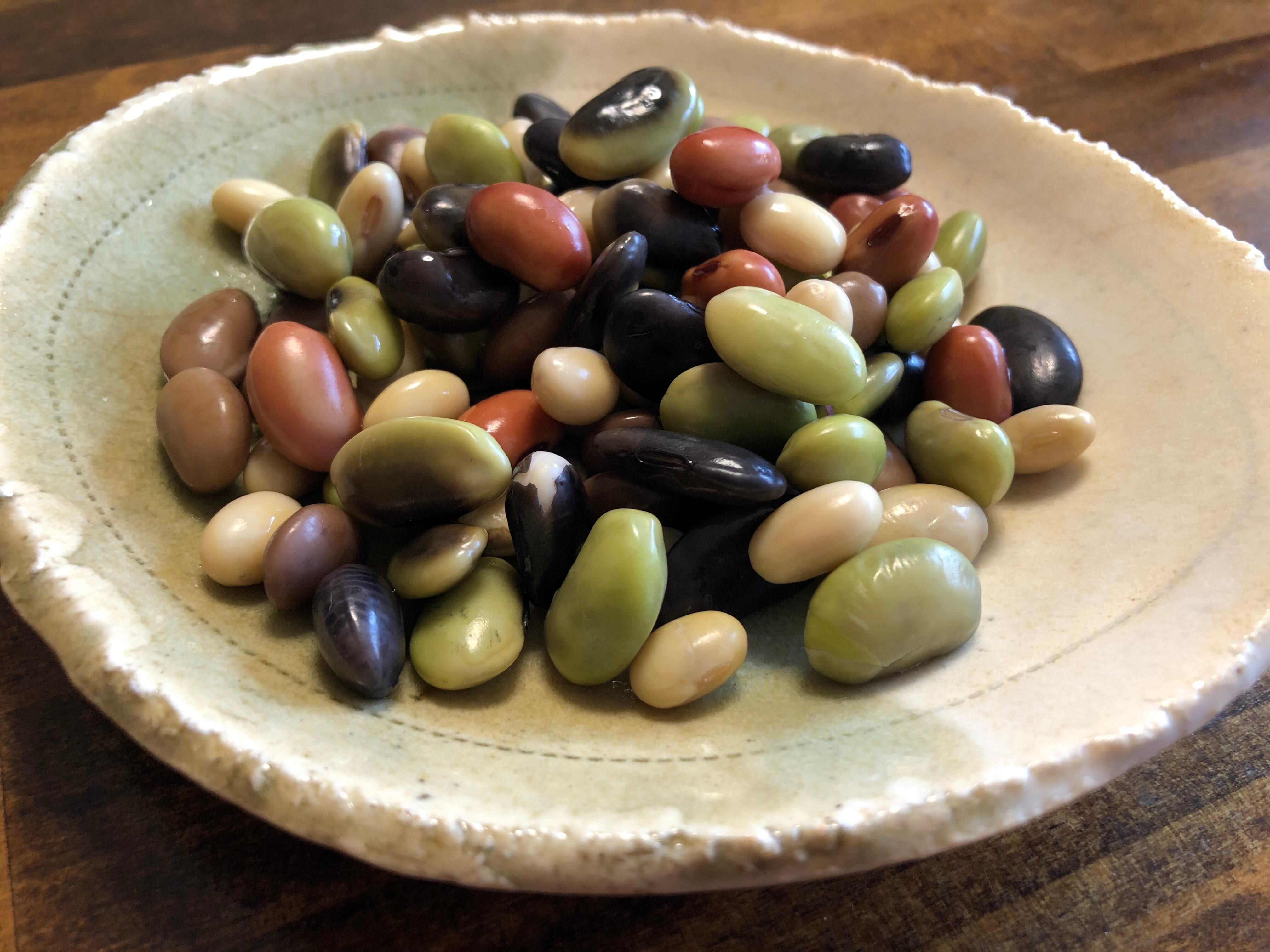 今年も 数百年続く山形真室川地区の在来種農家の伸一さんの「五色豆」(色とりどりの大豆MIX)をお頒け出来る事になりました。
